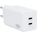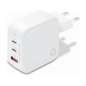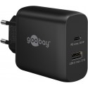 Universalladdare med två stycken USB-C-portar där den ena porten kan ladda med 45 Watt och den andra med 20 Watt...