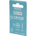 Singelpack med CR1220 3V litium knappcellsbatteri utan bly, kadmium och kvicksilver. Lång livslängd till ett bra pris!