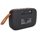 Superportabel bluetooth-högtalare från Streetz som förutom att spela upp musik trådlöst har flera andra anslutningsmöjligheter, inklusive att den har en inbyggd FM-radio! Det laddningsbara batteriet klarar ca 2-3 timmars uppspelning på en laddning.
