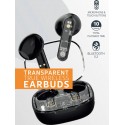 Bekväma true wireless in-ear hörlurar/headset för äkta trådlöst ljud med Bluetooth 5.2 och upp till 4 timmars batteritid (10 timmar med fodralet). Med inbyggd mikrofon och svarsknappar för samtal. Snygg design halvt i svart och halvt genomskinligt så att man ser de inre komponenterna.