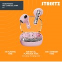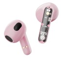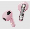 Bekväma true wireless in-ear hörlurar/headset för äkta trådlöst ljud med Bluetooth 5.2 och upp till 4 timmars batteritid (10 timmar med fodralet). Med inbyggd mikrofon och svarsknappar för samtal. Snygg design halvt i rosa och halvt genomskinligt så att man ser de inre komponenterna.