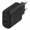 Snabbladdande väggladdare som har både USB-C-uttag och vanligt USB, med stöd för Qualcomm Quick Charge 3.0.