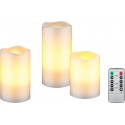 Set med tre LED-vaxljus i vitt, tillverkade med äkta vax i höljet. Ljusen efterliknar traditionella ljus med en realistisk...