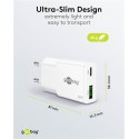Smal och kompakt snabbladdande strömadapter med både vanlig USB och USB-C så att du kan ladda två enheter samtidigt. Adaptern har stöd för både QC 3.0 och USB-C PD med laddning upp till 20 Watt. Välj färg, finns i svart och vit!