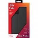 Ett skyddande plånboksfodral från Zagg som passar till iPhone 13, 14 och 15. Det finns tre platser för kreditkort så att man kan ersätta sin plånbok med enbart detta fodral. Det fungerar också som ett ställ till telefonen om man exempelvis vill titta på video horisontellt.
