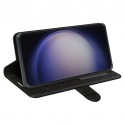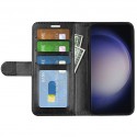 Snyggt mobilfodral i plånboksform med plats för både tre betalkort och sedlar, utöver platsen för din mobiltelefon förstås! Detta fodral skyddar din telefon mot repor och stötar på ett elegant sätt och fungerar även som ett ställ för din mobiltelefon. Passar till Samsung Galaxy S24.