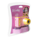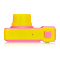 Enkel och tålig digitalkamera för barn med inbyggd skärm och möjlighet att ta bilder med roliga ramar. En timmes batteritid och med upplösning i VGA-kvalitet.
