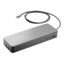 Universaldockningsstation som ansluts via USB-C och har stöd för anslutning av tre externa skärmar med upplösningar upp till 4K samt massor av andra tillbehör. Dockningsstationen kan även ladda den anslutna bärbara datorn med upp till 100 Watt Power Delivery.