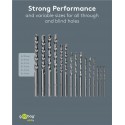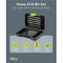 Borrset med 15 borr som ger precision och pålitlighet vid arbete i sten och hårda material, med centreringsspets som säkerställer raka och exakta hål. Det robusta fodralet med märkta platser gör det enkelt att snabbt hitta rätt borr och underlättar alla typer av projekt.