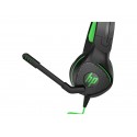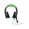 Bekvämt gamingheadset med stora kåpor och snygg design med giftgröna detaljer. Headsetet ansluts med en 3,5 millimeters kontakt (4-pol, dvs både mikrofon och hörlur i en och samma kontakt) och fungerar därmed både till gaming på dator, konsoler som Xbox och Playstation 4 och på mobiltelefoner och surfplattor som har ett 3,5 millimeter ljuduttag.