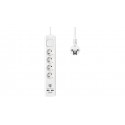 Smart grenuttag med fyra jordade uttag, två USB-portar och överspänningsskydd. Grenuttaget har en platt kontakt som gör att det tar mindre plats bakom möbler och kan även hängas upp med de två hängarna på baksidan.