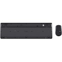 Trådlöst set med tangentbord och mus som är extra tysta och har en ergonomisk design för bekväm användning. Tangentbordet är utrustat med smidiga multimediatangenter och har en spillsäker design.