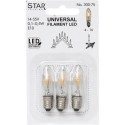 Dessa E10 LED-lampor i 3-pack sprider ett varmt och behagligt ljus som skapar en härlig stämning i adventsljusstakar, julgransbelysning och annan dekoration. De är energieffektiva, hållbara och går att använda både inomhus och utomhus. Fungerar i ljusstakar som har 4-16 lampor totalt.