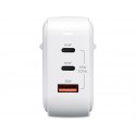 Snabbladdande och kraftfull AC-adapter med stöd för både USB-C Power Delivery och QuickCharge 3.0 och utrustad med tre USB-uttag (två USB-C och ett vanligt USB-A). Med en maximal output på 65 Watt är den stark nog att ladda de flesta USB-C-laddade bärbara datorer!