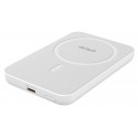 Kompakt powerbank med kapacitet på 5 000 mAh och stöd för både trådlös laddning upp till 15 W och snabb USB-C PD 20 W laddning. Med magnetisk MagSafe-kompatibilitet och snabb uppladdning på cirka 3,5 timmar är den perfekt för smidig mobilladdning när du är på språng.