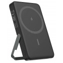 Kompakt powerbank med kapacitet på 5 000 mAh och stöd för både trådlös laddning upp till 15 W och snabb USB-C PD 20 W laddning. Med magnetisk MagSafe-kompatibilitet, LED-batteriindikator och snabb uppladdning på cirka 3,5 timmar är den perfekt för smidig mobilladdning när du är på språng. Det finns också ett inbyggt stöd så att man kan ladda sin MagSafe-telefon stående.
