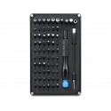 Mångsidigt och precist skruvmejselset med 64 bitar och ett flexibelt förlängningsstycke som gör monteringen enkel även i trånga utrymmen. Ett kompakt och pålitligt verktyg som ger dig full kontroll över varje skruvtag – perfekt för både proffs och hobbyfixare.