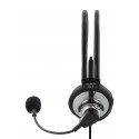 Enkelt och prisvärt on-ear headset för användning i kontorslandskap, med två stycken 3.5 millimeters kontakter för anslutning. Har justerbart huvudband och mikrofon samt volymkontroll smidigt placerad på kabeln.
