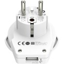 Reseadapter från Skross för att ansluta världens elkontakter till europeiska eluttag. Klarar anslutning av kontakter från EU, Australien, Kina, Storbritannien, USA, Japan, Schweiz, Italien och Brasilien och har även USB-kontakt för laddning av mobila enheter. Observera att adaptern inte omvandlar spänningen!