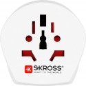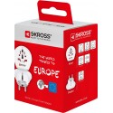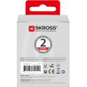 Skross Country Adapter World to Europe (modell 39769) är en kompakt reseadapter som omvandlar kontakter från USA, Storbritannien, Australien, Schweiz, Italien med mera till europeiska uttag (Type F). Den klarar belastningar upp till cirka 4000 W / 250 V och passar både jordade och ojordade kontakter. Adapterkonfigurationen är tunn och platsbesparande.