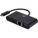 Väldigt snabb USB-C-Hubb som utökar anslutningsmöjligheterna för din dator genom att erbjuda HDMI, USB-C, USB 3.0 och en Ethernetanslutning.