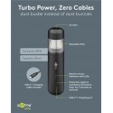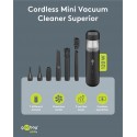 Superkompakt men ändå kraftfull minidammsugare som effektivt tar bort damm, smulor och djurhår i hemmet, bilen eller på kontoret. Med sju munstycken, tre borstar och tre effektlägen når den enkelt även svåråtkomliga ytor och ger ett skinande rent resultat samtidigt som den inbyggda dammblåsaren även låter dig rengöra elektronik med lätthet.