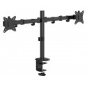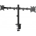 Smart och kraftfullt bordsfäste som låter dig montera två skärmar på ditt skrivbord, med möjlighet att vinkla, rotera och luta så att du får skärmarna precis som du vill ha dem. Fästet monteras enkelt i en bordsskiva och passar till skärmar i storleken 17-32" som har stöd för VESA 75 eller VESA 100. Max belastning är 9 kg per skärm.
