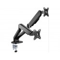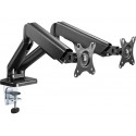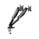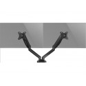 Smart och kraftfullt bordsfäste som låter dig montera två skärmar på ditt skrivbord, med möjlighet att vinkla, rotera och luta så att du får skärmarna precis som du vill ha dem. Fästet monteras enkelt i en bordsskiva och passar till skärmar i storleken 17-32" som har stöd för VESA 75 eller VESA 100. Max belastning är 9 kg per skärm.